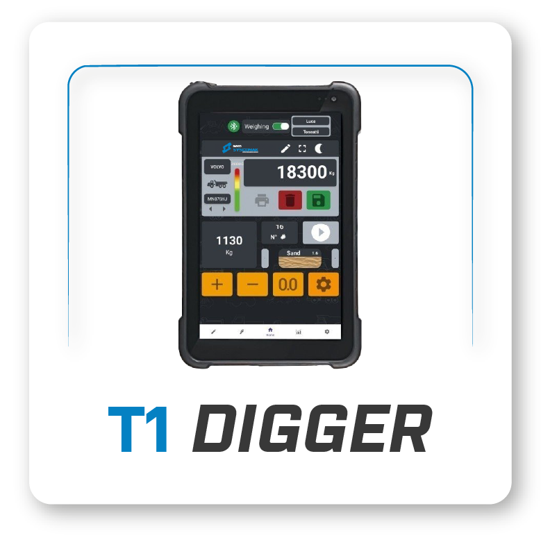 Le T1 DIGGER est un nouveau concept de pesage embarqué et de gestion de la productivité pour les excavatrices de terrassement et d’extraction, disponible en version de base ou avancée. Grâce au module de transmission Bluetooth T1MMT, il permet un contrôle direct et constant du matériel chargé et des détails du travail via une application Android. Toutes les données de pesage peuvent être transmises au système informatique embarqué ou directement sur des appareils externes, garantissant le contrôle de la productivité et la sécurité des machines.